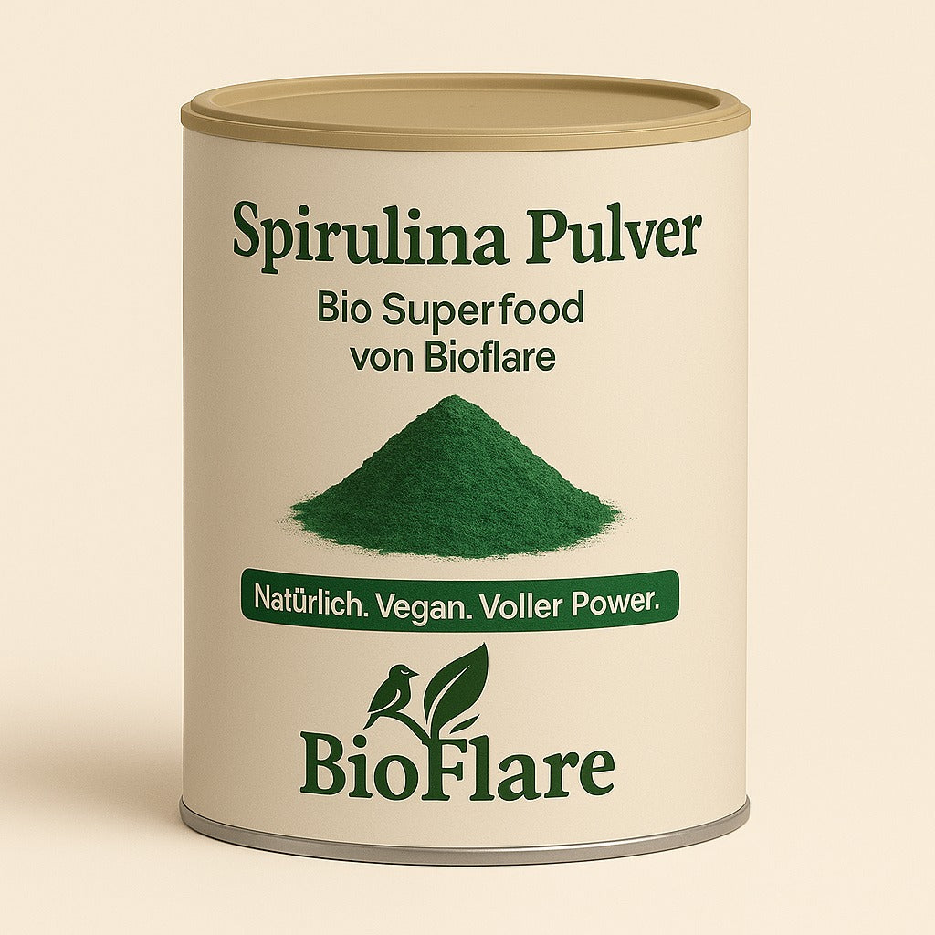 Unser Bio Spirulina Pulver ist ein hochwertiges Superfood aus der Mikroalge Spirulina platensis. Es überzeugt durch seinen hohen Gehalt an pflanzlichem Eiweiß, wertvollem Chlorophyll, Eisen sowie den Vitaminen B1, B2 und B12. Damit unterstützt Spirulina Körper und Geist ideal für alle, die mehr Energie, Vitalität und Balance in ihren Alltag bringen möchten.